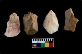 | Description / विवरण | There are n-4 of intact utilized flakes made up of Chert. Some of them have bulge of percussion, some are flat flakes and few are retouched. |