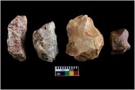 | Description / विवरण | There are n-4 of intact flake cores. Out of them 1 is made up Chalcedony and 3 are made up of Chert.There are multidirectional irregular dominant scar pattern on both dorsal and ventral face of the cores. |