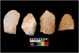 | Description / विवरण | Four cores; all are uneven with removal of flakes from few sides. |