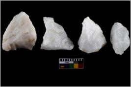 | Description / विवरण | There are n-4 of intact utilized flake cores made up of Quartz. Some of them have bulge of percussion and some are flat flakes. |