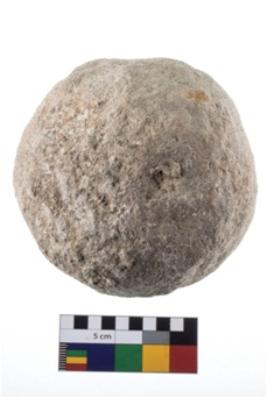| Description / विवरण | A partially broken specimen of roughly round shaped hammer stone with battered periphery along with the circumference. |