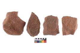 | Description / विवरण | There are n-4 of utilized flake cores. There are multidirectional irregular dominant scar pattern on both dorsal and ventral face of the cores. |