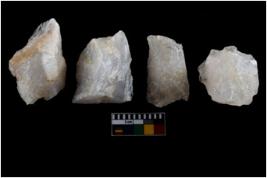 | Description / विवरण | There are n-4 of intact utilized flake cores made up of Quartz. Some of them have bulge of percussion and some are flat flakes. |