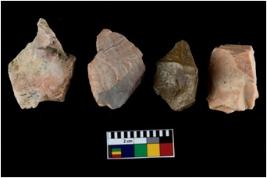 | Description / विवरण | There are n-4 of intact utilized flakes made up of Chert. Some of them have bulge of percussion, some are flat flakes and few are retouched. |