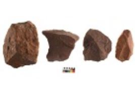 | Description / विवरण | Specimen of cores with visible weathered cortex and few broad fluted marks. Almost all are irregular in shape and size.One is tapering at one end. |