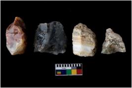 | Description / विवरण | There are n-4 of intact flake cores. Out of them 1 is made up Chalcedony and 3 are made up of Chert.There are multidirectional irregular dominant scar pattern on both dorsal and ventral face of the cores. |