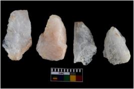 | Description / विवरण | There are n-4 of intact utilized flake cores made up of Quartz. Some of them have bulge of percussion and some are flat flakes. |