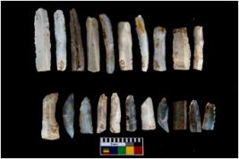 | Description / विवरण | There are n-20 of intact microliths. Out of them 7 are made up of Chalcedony, 10 are made up of Chert and 3 are made up of Agate. They show variation in size and shape. Some of them are blunted back blades, crescent and truncated blades. All blades have retouched sides. |