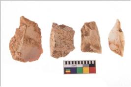 | Description / विवरण | Four flakes; most of them are tapering at one end with sharp edges. |