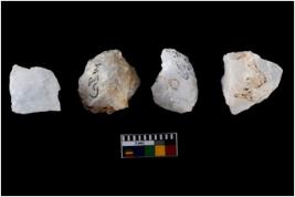 | Description / विवरण | A specimen of a fluted Core with several broad fluted marks indicating the detached blades from it. |