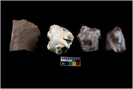 | Description / विवरण | There are n-4 of intact flake cores. Out of them 1 is made up Chalcedony and 3 are made up of Chert.There are multidirectional irregular dominant scar pattern on both dorsal and ventral face of the cores. |
