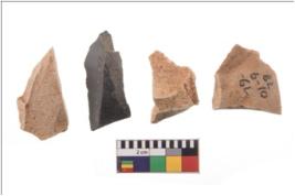 | Description / विवरण | Four flakes; most of them are tapering at one end with sharp edges. |
