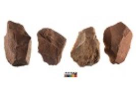 | Description / विवरण | Specimen of cores with visible weathered cortex and few broad fluted marks. Almost all are irregular in shape and size. Most of them are having sharp edges. |