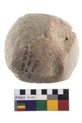 | Description / विवरण | A partially broken specimen of roughly round shaped hammer stone with battered periphery along with the circumference. |