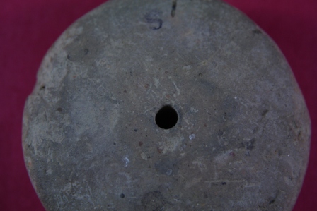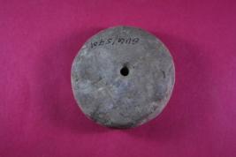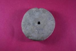 A circular wheel, edge is slightly damaged, a hole is there at the centre.