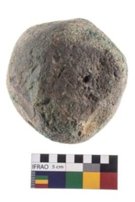 | Description / विवरण | A partially broken specimen of roughly round shaped hammer stone with battered periphery along with the circumference. |