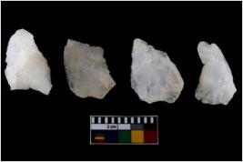 | Description / विवरण | There are n-4 of intact utilized flake cores made up of Quartz. Some of them have bulge of percussion and some are flat flakes. |