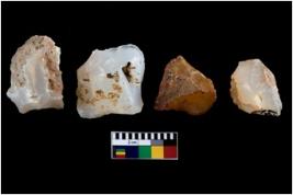 | Description / विवरण | There are n-4 of intact flake cores. Out of them 1 is made up Chalcedony and 3 are made up of Chert.There are multidirectional irregular dominant scar pattern on both dorsal and ventral face of the cores. |