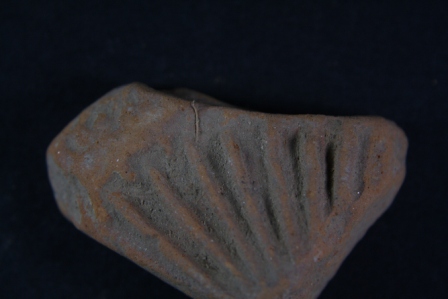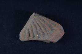 Fragment of a wheel has linear motifs on its surface.