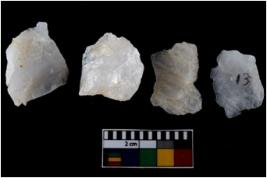 | Description / विवरण | There are n-4 of intact utilized flake cores made up of Quartz. Some of them have bulge of percussion and some are flat flakes. |