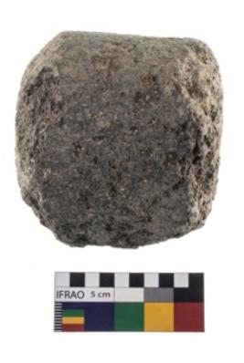 | Description / विवरण | A partially broken specimen of roughly round shaped hammer stone with battered periphery along with the circumference. |