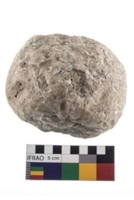 | Description / विवरण | A partially broken specimen of roughly round shaped hammer stone with battered periphery along with the circumference. |