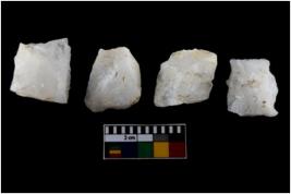 | Description / विवरण | There are n-4 of intact utilized flake cores made up of Quartz. Some of them have bulge of percussion and some are flat flakes. |
