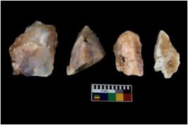 | Description / विवरण | There are n-4 of intact flake cores. Out of them 1 is made up Chalcedony and 3 are made up of Chert.There are multidirectional irregular dominant scar pattern on both dorsal and ventral face of the cores. |