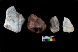 | Description / विवरण | There are n-4 of intact flake cores. Out of them 1 is made up Chalcedony and 3 are made up of Chert.There are multidirectional irregular dominant scar pattern on both dorsal and ventral face of the cores. |