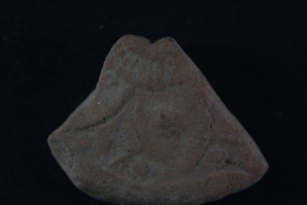 Fragment of a wheel has floral motif on its surafce.
