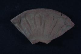 Fragment of a wheel has floral motifs on its surface.
