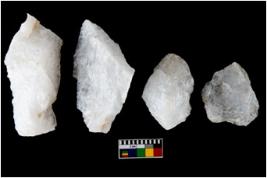 | Description / विवरण | There are n-4 of utilized worked flake cores. Some of them have bulge of percussion and some are flat flakes. |