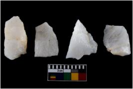 | Description / विवरण | There are n-4 of intact utilized flake cores made up of Quartz. Some of them have bulge of percussion and some are flat flakes. |