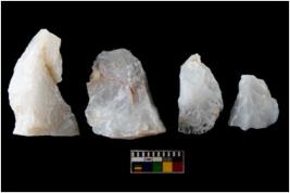 | Description / विवरण | There are n-4 of utilized worked flake cores. Some of them have bulge of percussion and some are flat flakes. |