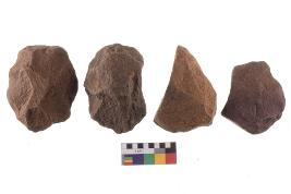 | Description / विवरण | There are n-4 of utilized flake cores. There are multidirectional irregular dominant scar pattern on both dorsal and ventral face of the cores. |