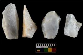 | Description / विवरण | There are n-4 of utilized worked flake cores. Some of them have bulge of percussion and some are flat flakes. |
