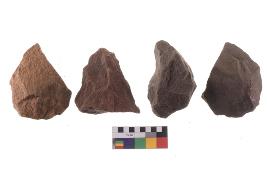 | Description / विवरण | There are n-4 of utilized flake cores. There are multidirectional irregular dominant scar pattern on both dorsal and ventral face of the cores. |