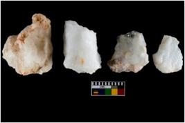 | Description / विवरण | There are n-4 of utilized worked flake cores. Some of them have bulge of percussion and some are flat flakes. |