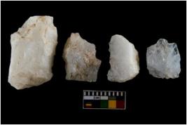 | Description / विवरण | There are n-4 of utilized worked flake cores. Some of them have bulge of percussion and some are flat flakes. |