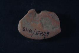 Margin is broken. Surface is rough and flaked.