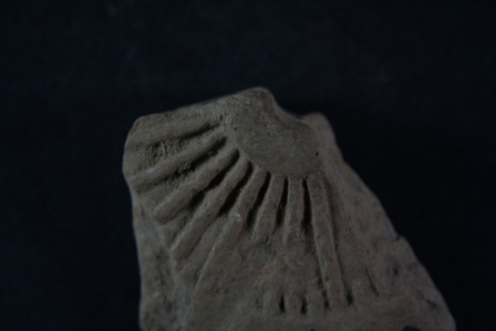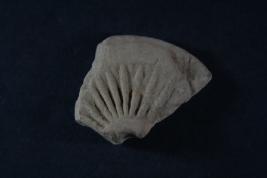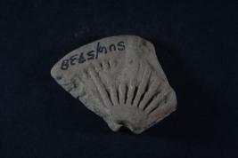 Broken from margin. Surface is rough and flaked.