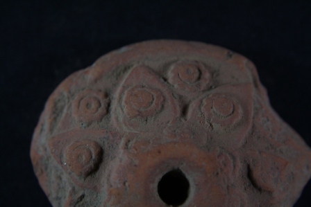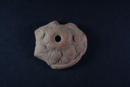 Fragment of a wheel has floral motifs on the surafce.