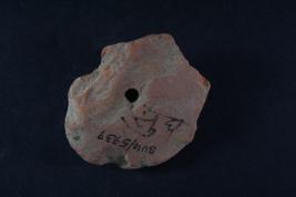 Broken from margin. Surface is rough and flaked.