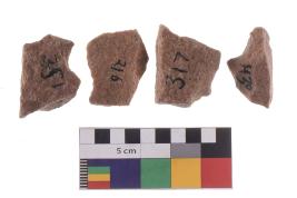 | Description / विवरण | There are n-4 of utilized flake cores. There are multidirectional irregular dominant scar pattern on both dorsal and ventral face of the cores. |