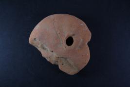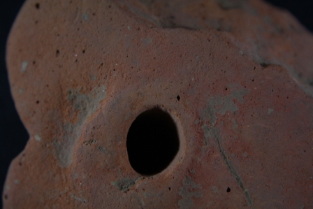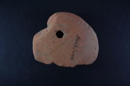 Broken from margin. Surface is rough and flaked.