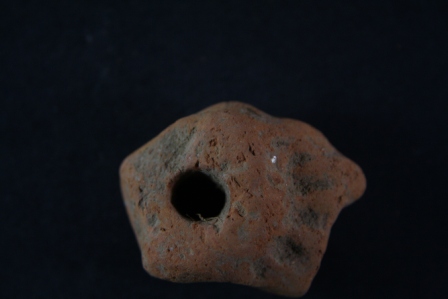 Broken from margin. Surface is rough and flaked.