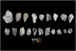 | Description / विवरण | There are 20 Flakes ,some are side retouched. Shapes and sizes vary among themselve.Most of them have sharp sides which looks like the result of retouching.Some are conical and thin, some are arc in shape. Most of them are trapezium in shape. |