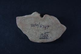 Broken from margin. Surface is rough and flaked.