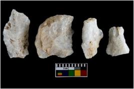 | Description / विवरण | There are n-4 of utilized worked flake cores. Some of them have bulge of percussion and some are flat flakes. |