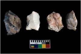 | Description / विवरण | There are n-4 of intact flake cores. Out of them 1 is made up Chalcedony and 3 are made up of Chert.There are multidirectional irregular dominant scar pattern on both dorsal and ventral face of the cores. |